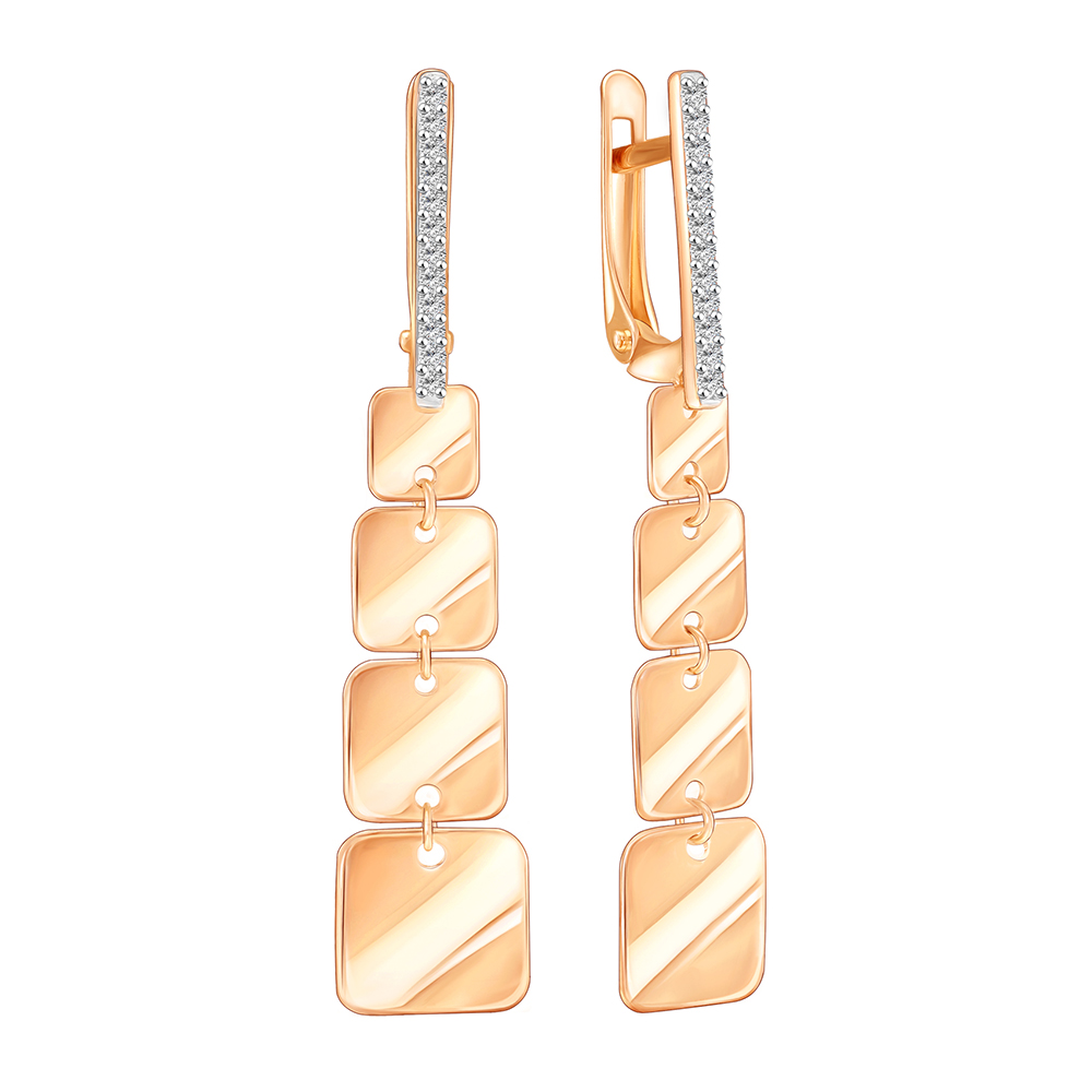 Золотые cерьги висячие с фианитом, артикул 184155 по цене 47597 руб. в наличии в салонах Город Золотой. Изделие имеет внешний вид "С подвесом", красный цвет, весом 2,7 грамм.