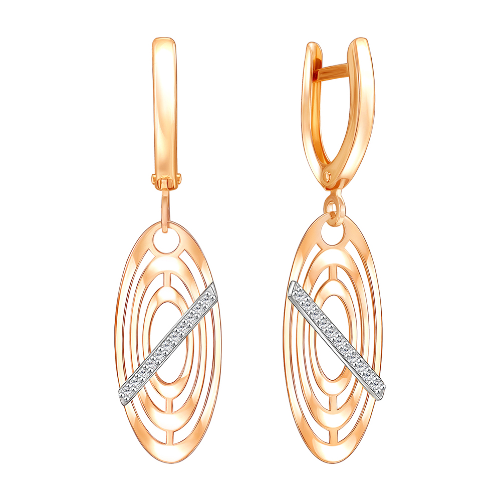 Золотые cерьги висячие с фианитом, артикул 184159 по цене 47597 руб. в наличии в салонах Город Золотой. Изделие имеет внешний вид "С подвесом", красный цвет, весом 2,67 грамм.
