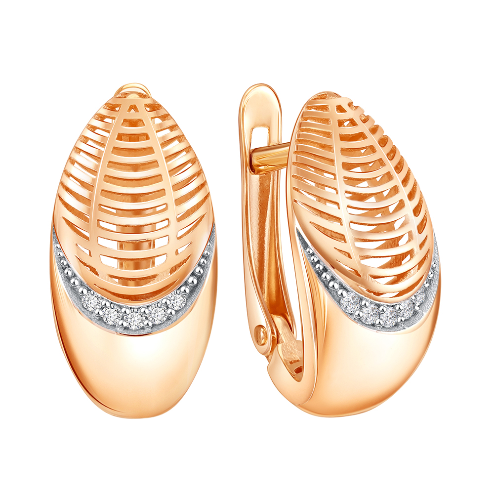 Золотые cерьги классические с фианитом, артикул 184004 по цене 47597 руб. в наличии в салонах Город Золотой. Изделие имеет внешний вид "Классика/узор", красный цвет, весом 2,69 грамм.