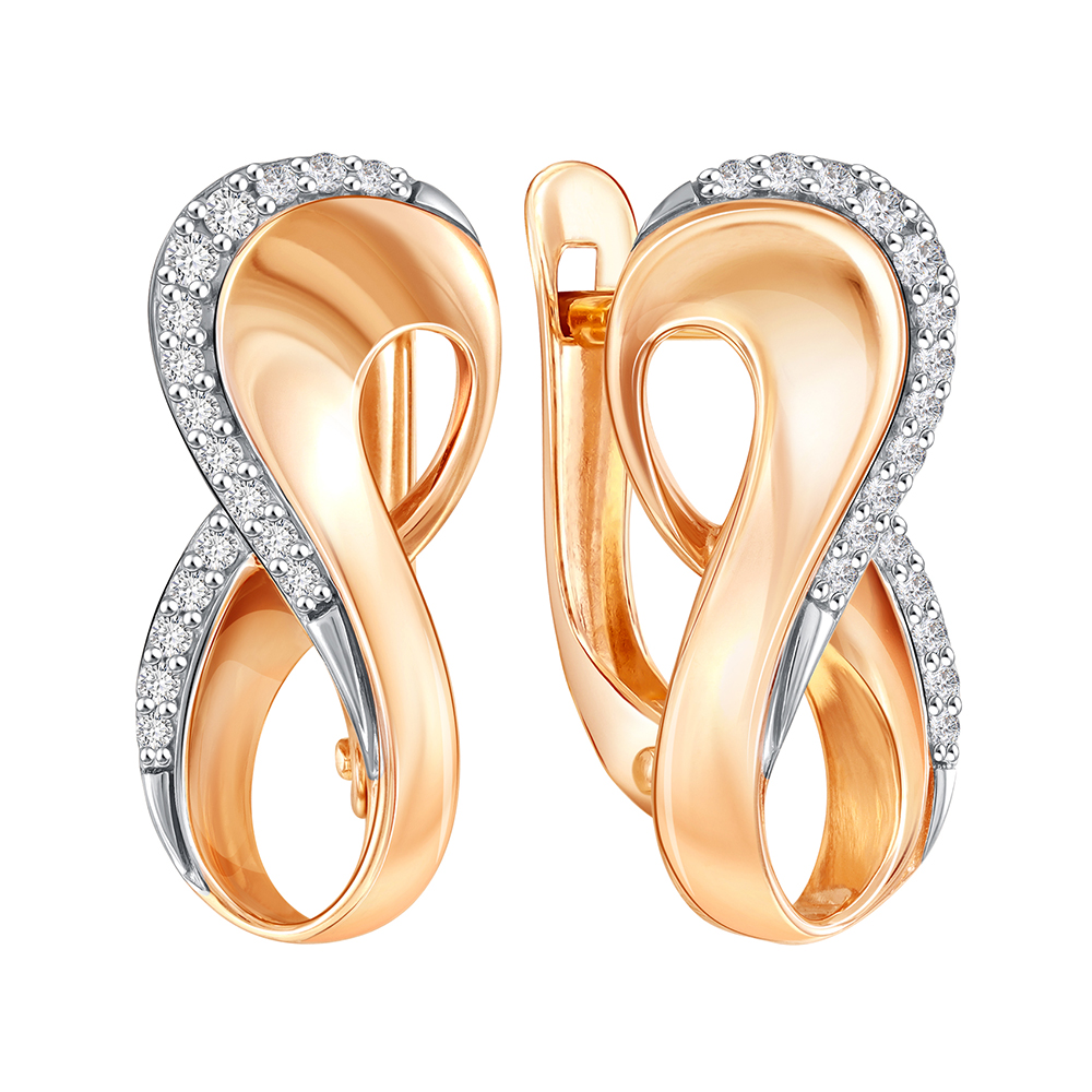 Золотые cерьги классические с фианитом, артикул 184014 по цене 54597 руб. в наличии в салонах Город Золотой. Изделие имеет внешний вид "Классика/узор", красный цвет, весом 3,12 грамм.