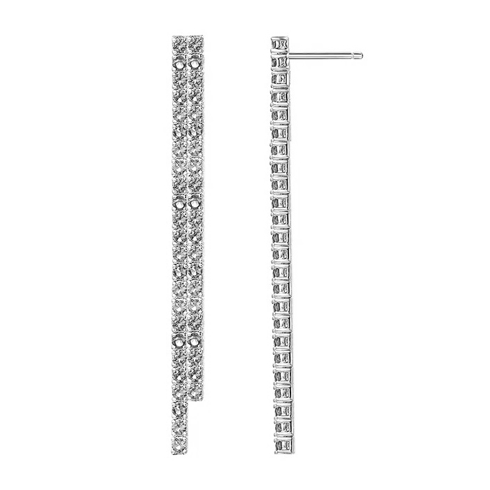 Серебряные cерьги пусеты (гвоздики) с фианитом, артикул 184241 по цене 17120 руб. в наличии в салонах Город Золотой. Изделие имеет внешний вид "Дорожка", белый цвет, весом 12,9 грамм.