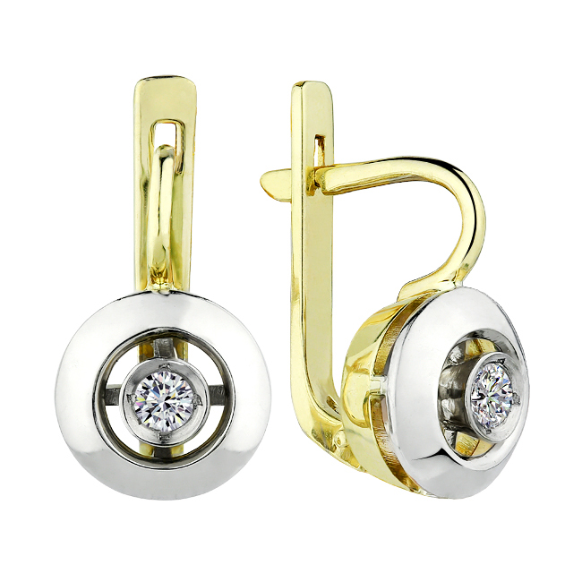 Золотые cерьги классические с бриллиантом, артикул 184402 по цене 221942 руб. в наличии в салонах Город Золотой. Изделие имеет внешний вид "Классика/узор", желто-белый цвет, весом 4,88 грамм.