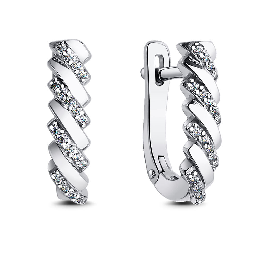 Серебряные cерьги классические с фианитом, артикул 184867 по цене 9320 руб. в наличии в салонах Город Золотой. Изделие имеет внешний вид "Классика/узор", белый цвет, весом 3,33 грамм.