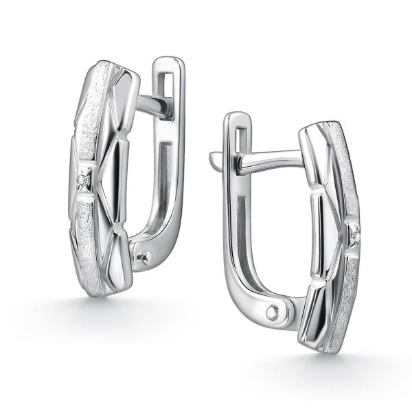 Серебряные cерьги классические с бриллиантом, артикул 184995 по цене 5190 руб. в наличии в салонах Город Золотой. Изделие имеет внешний вид "Классика/узор", белый цвет, весом 2,52 грамм.