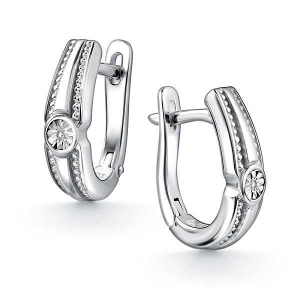 Серебряные cерьги классические с бриллиантом, артикул 185001 по цене 6490 руб. в наличии в салонах Город Золотой. Изделие имеет внешний вид "Классика/узор", белый цвет, весом 3,79 грамм.