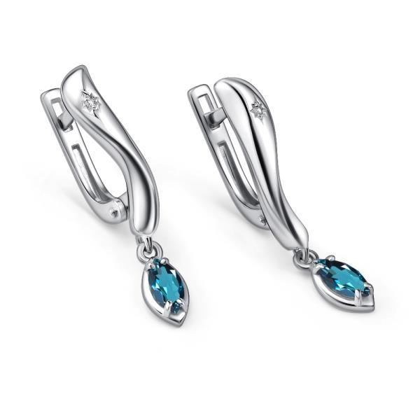Серебряные cерьги висячие с лондон топазом, артикул 185021 по цене 8190 руб. в наличии в салонах Город Золотой. Изделие имеет внешний вид "С подвесом", белый цвет, весом 2,81 грамм.