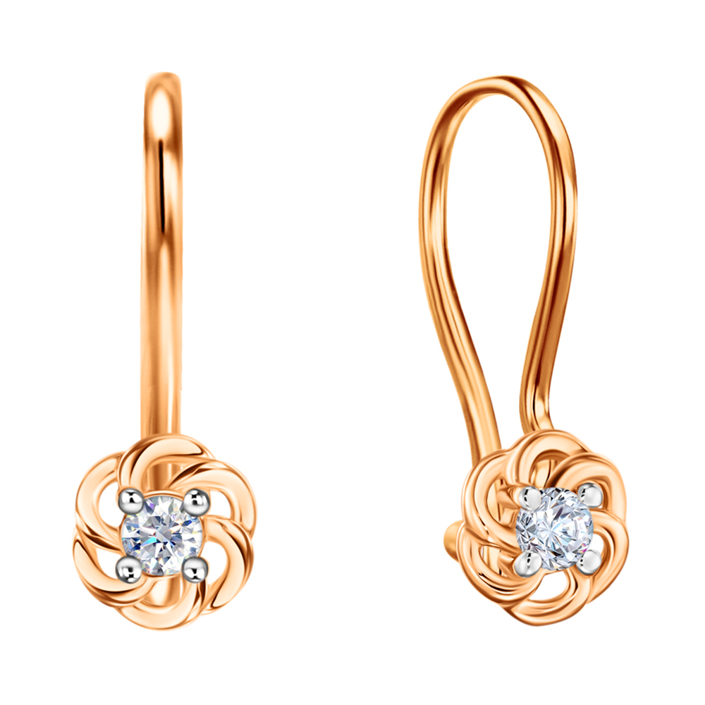 Золотые cерьги классические с фианитом, артикул 185108 по цене 16972 руб. в наличии в салонах Город Золотой. Изделие имеет внешний вид "Классика/узор", красный цвет, весом 0,92 грамм.