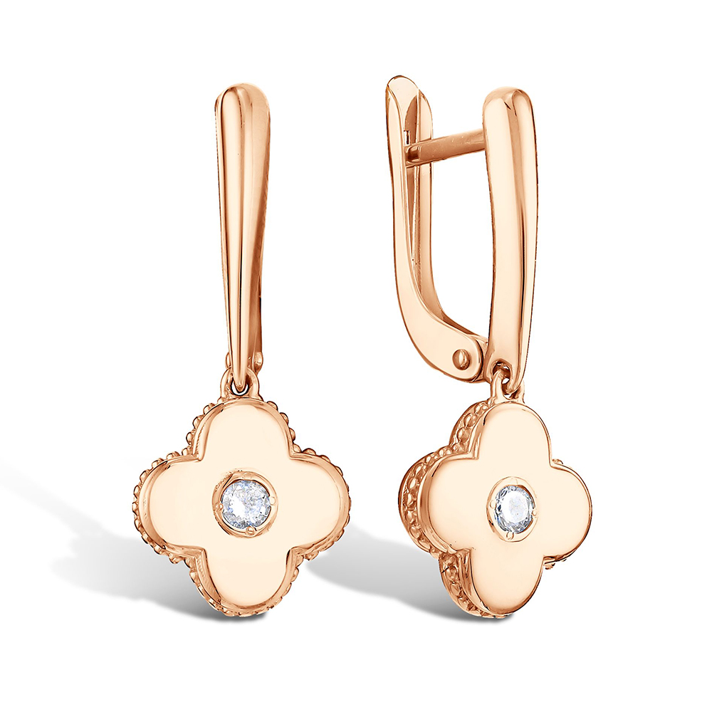 Золотые cерьги висячие с фианитом, артикул 185332 по цене 45147 руб. в наличии в салонах Город Золотой. Изделие имеет внешний вид "С подвесом", красный цвет, весом 2,43 грамм.