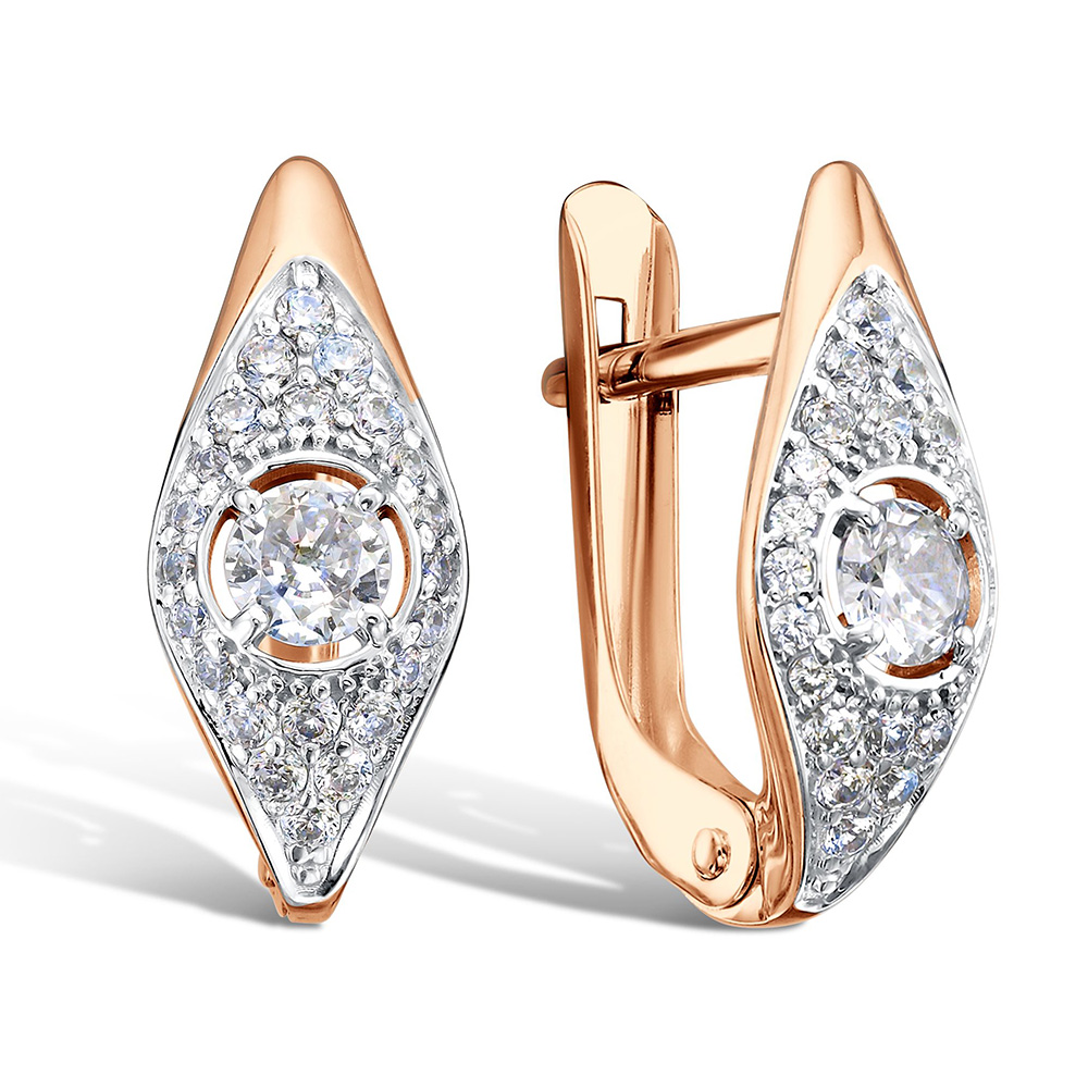Золотые cерьги классические с фианитом, артикул 185347 по цене 36047 руб. в наличии в салонах Город Золотой. Изделие имеет внешний вид "Классика/узор", красный цвет, весом 1,93 грамм.