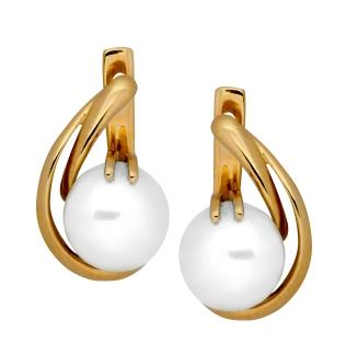 Золотые cерьги классические с жемчугом, артикул 40489 по цене 155694 руб. в наличии в салонах Город Золотой. Изделие имеет внешний вид "Классика/узор", красный цвет, весом 5,93 грамм.