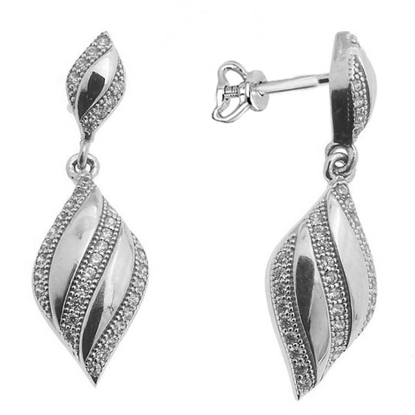 Серебряные cерьги пусеты (гвоздики) с фианитом, артикул 121183 по цене 3990 руб. в наличии в салонах Город Золотой. Изделие имеет внешний вид "С подвесом", белый цвет, весом 3,7 грамм.
