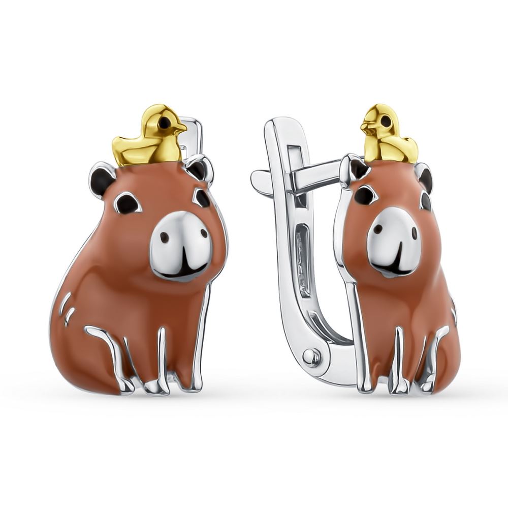 Серебряные cерьги классические с позолотой с эмалью, артикул 185790 по цене 4280 руб. в наличии в салонах Город Золотой. Изделие имеет внешний вид "Классика/узор", белый цвет, весом 2,53 грамм.