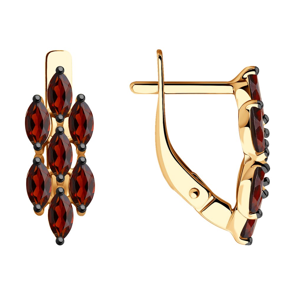 Золотые cерьги с гранатом, артикул 185961 по цене 44958 руб. в наличии в салонах Город Золотой. Изделие имеет внешний вид "Дорожка", красный цвет, весом 2,26 грамм.