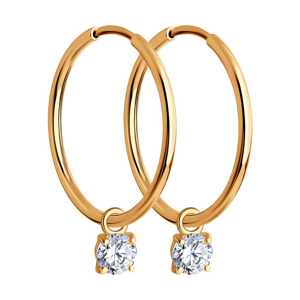 Золотые cерьги конго с фианитом, артикул 185614 по цене 20633 руб. в наличии в салонах Город Золотой. Изделие имеет внешний вид "С подвесом", красный цвет, весом 1,15 грамм.