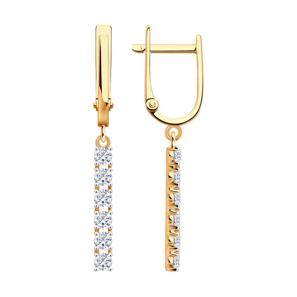 Золотые cерьги висячие с фианитом, артикул 185631 по цене 37233 руб. в наличии в салонах Город Золотой. Изделие имеет внешний вид "С подвесом", красный цвет, весом 2,14 грамм.