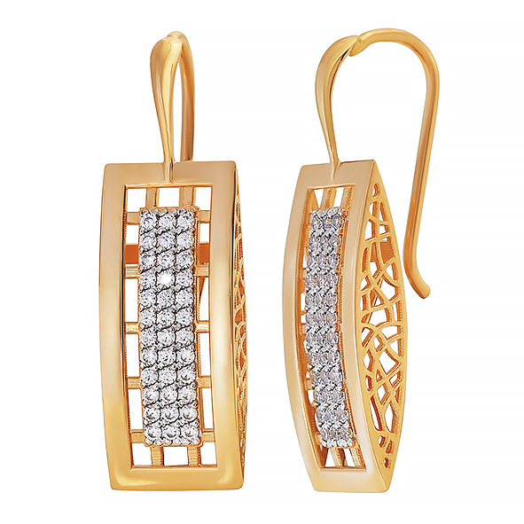 Золотые cерьги классические с фианитом, артикул 185899 по цене 70035 руб. в наличии в салонах Город Золотой. Изделие имеет внешний вид "Классика/узор", красный цвет, весом 3,56 грамм.