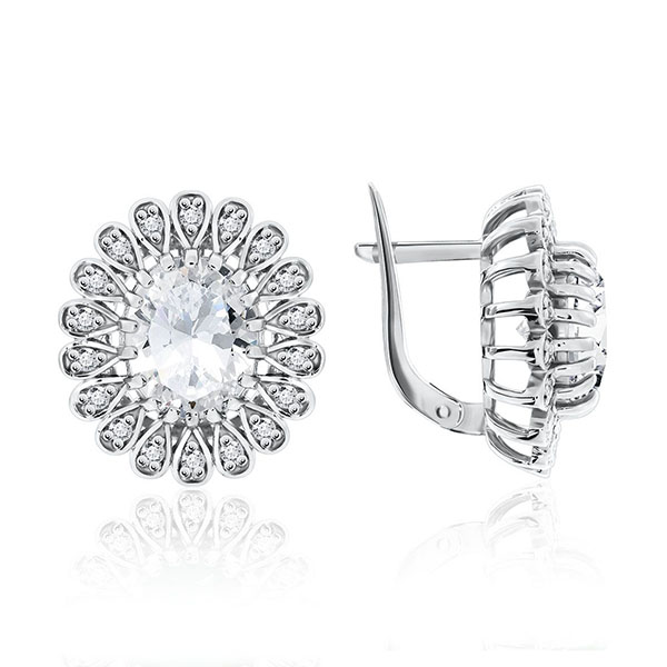 Серебряные cерьги классические с фианитом, артикул 122540 по цене 7190 руб. в наличии в салонах Город Золотой. Изделие имеет внешний вид "Классика/узор", белый цвет, весом 8,07 грамм.