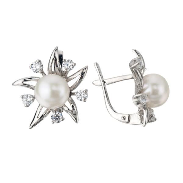 Серьги из серебра 925 пробы с жемчугом, артикул 109944 по цене 3190 руб. в наличии в салонах Город Золотой. Изделие имеет внешний вид "Классика/узор", белый цвет, весом 5,29 грамм.