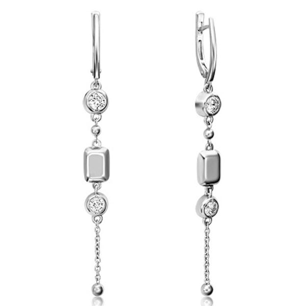 Серьги из серебра 925 пробы с фианитом, артикул 127529 по цене 4590 руб. в наличии в салонах Город Золотой. Изделие имеет внешний вид "С подвесом", белый цвет, весом 3,803 грамм.