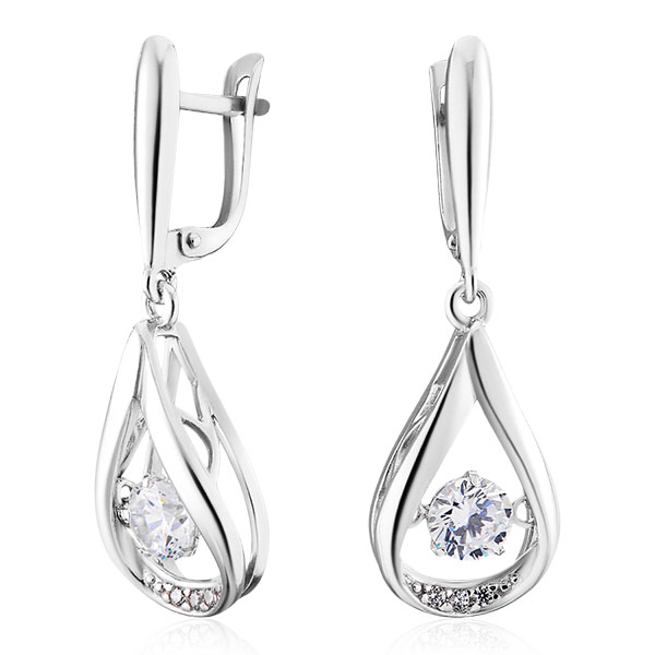 Серебряные cерьги висячие с фианитом, артикул 127991 по цене 3990 руб. в наличии в салонах Город Золотой. Изделие имеет внешний вид "С подвесом", белый цвет, весом 3,99 грамм.