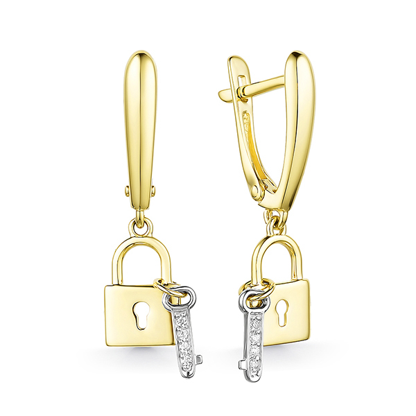 Серьги висячие из желтого золота с фианитом, артикул 141953 по цене 43659 руб. в наличии в салонах Город Золотой. Изделие имеет внешний вид "С подвесом", желтый цвет, весом 2,58 грамм.