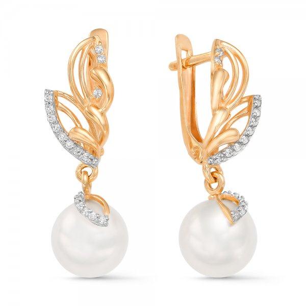 Золотые cерьги висячие с жемчугом, артикул 97357 по цене 26597 руб. в наличии в салонах Город Золотой. Изделие имеет внешний вид "С подвесом", красный цвет, весом 5,06 грамм.