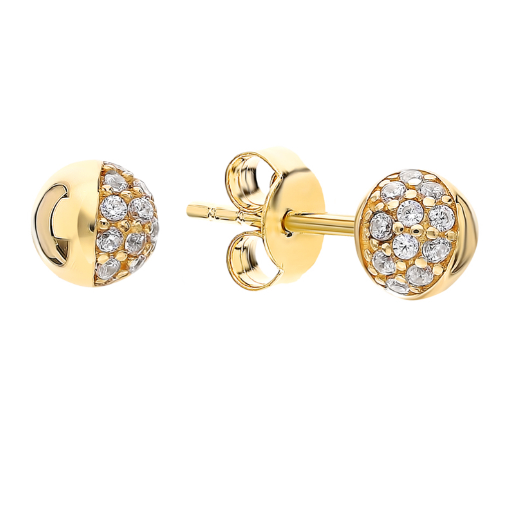 Половина шарика украшена мелкими фианитами, которые придают серьге мерцающий блеск. Такая модель понравится поклонницам минимализма или тем, кто носит несколько серег в одном ухе.