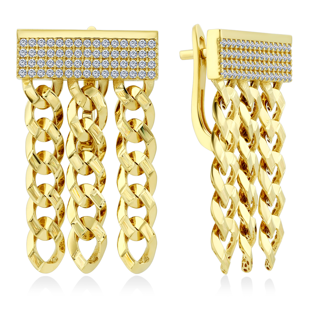 Серьги из желтого золота 585 пробы с цепочкой сейчас очень популярная модель.