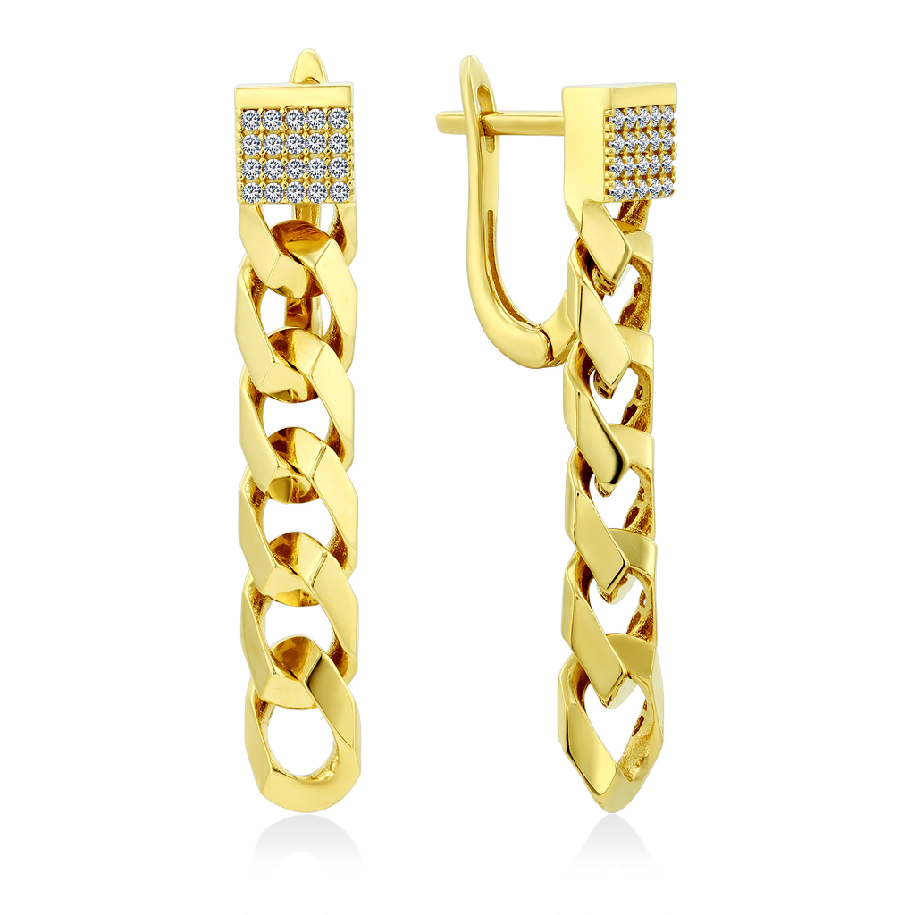 Серьги из желтого золота 585 пробы с цепочкой сейчас очень популярная модель.