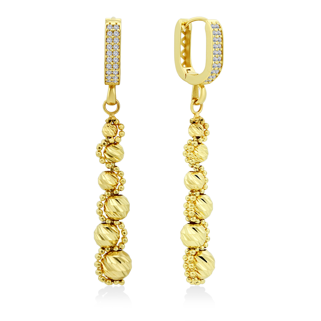 Серьги с подвесным элементом из желтого золота 585 пробы от Mostar Jewellery производства Италии – достойное внимания украшение, которое гармонично сочетает классическое и праздничное воплощение.