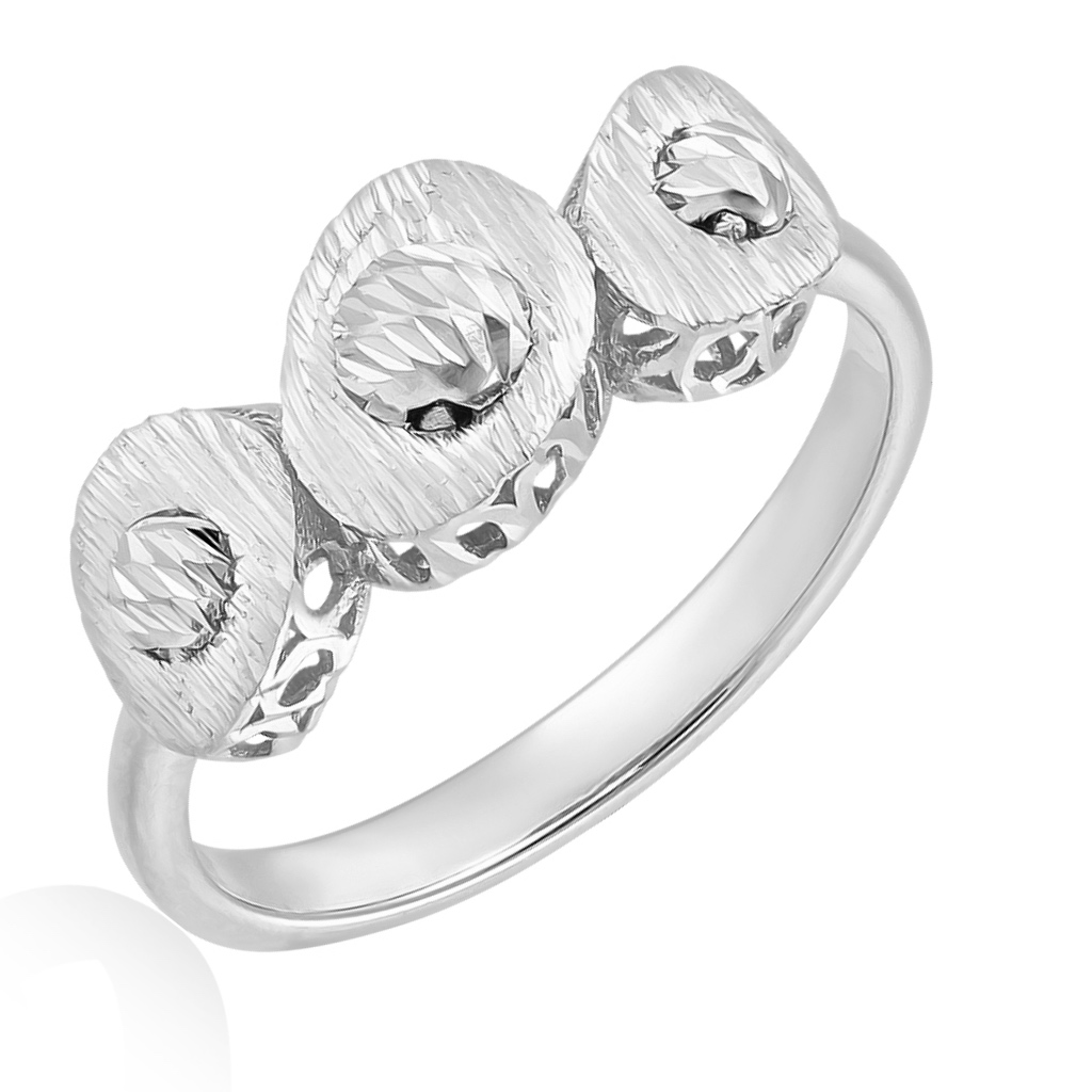 Верхушка кольца обработана фантазийной алмазной огранкой, которая удачно контрастирует с блестящей шинкой.