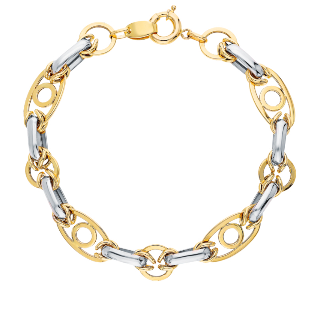 Браслет выполнен из золота 585 . Двусторонний, ручная сборка.