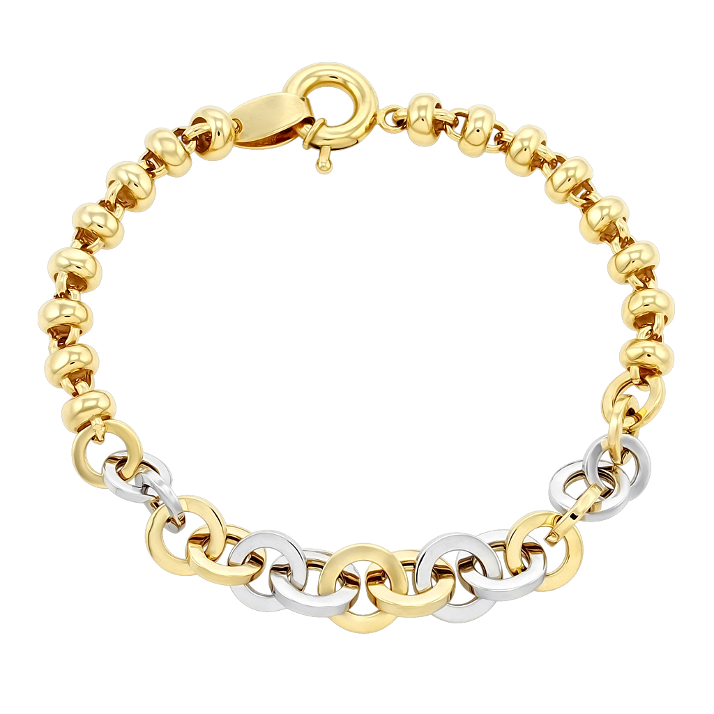 Браслет изготовлен из желтого золота 585 пробы. Необычная фантазийная модель очень красиво смотрится на руке и подходит для любого случая.
