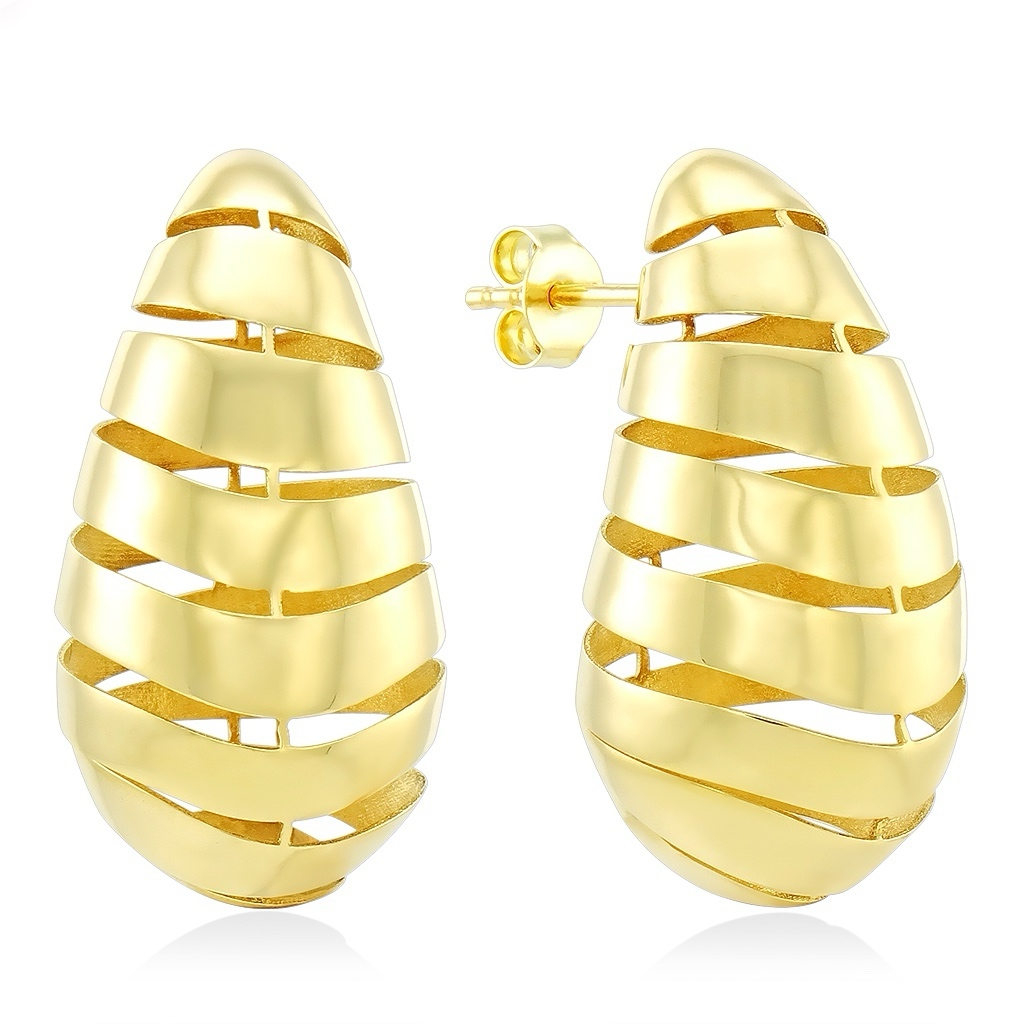 Серьги-пусеты в стиле известного итальянского бренда Bottega Veneta изготовлены из желтого золота 585 пробы. Креативный дизайн фирменной формы капля в этом сезоне не оставил равнодушной ни одну модницу.