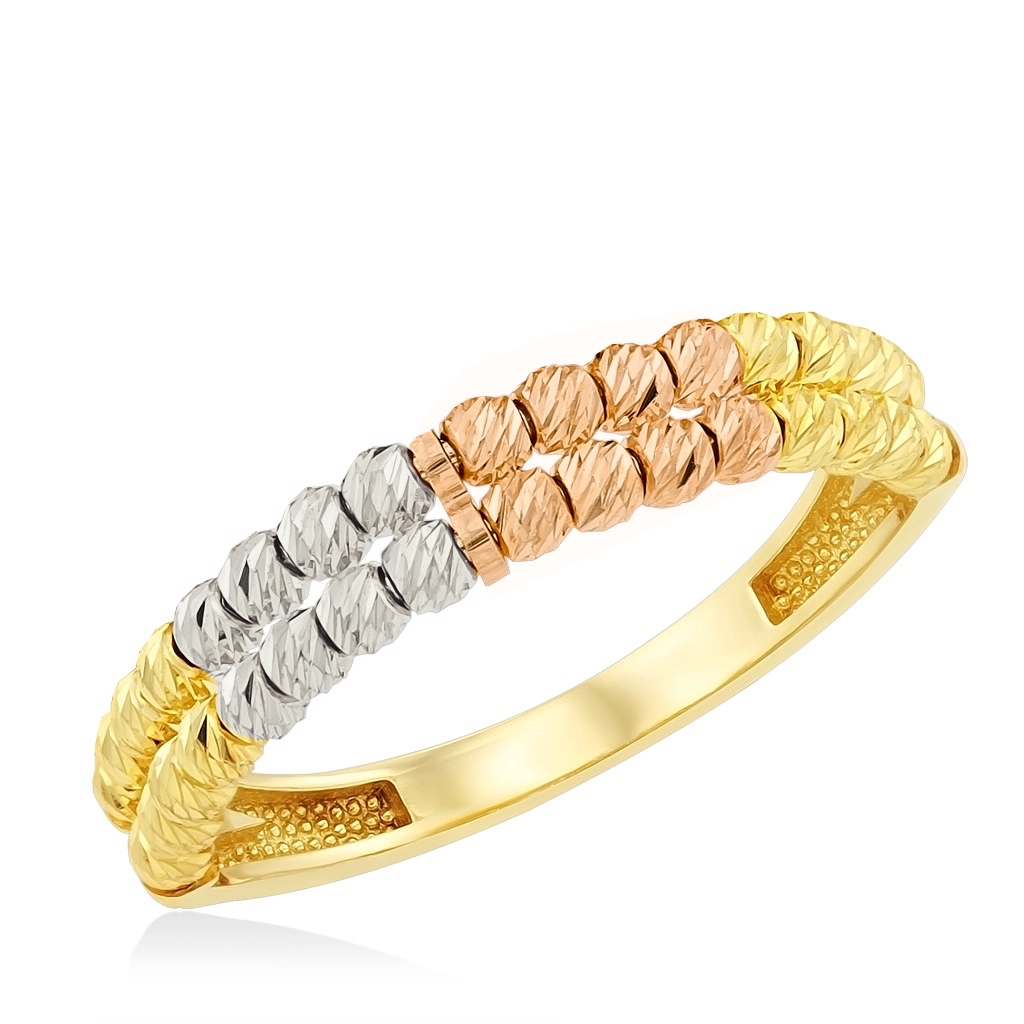 Кольцо выполнено из комбинированного золота 585 пробы.