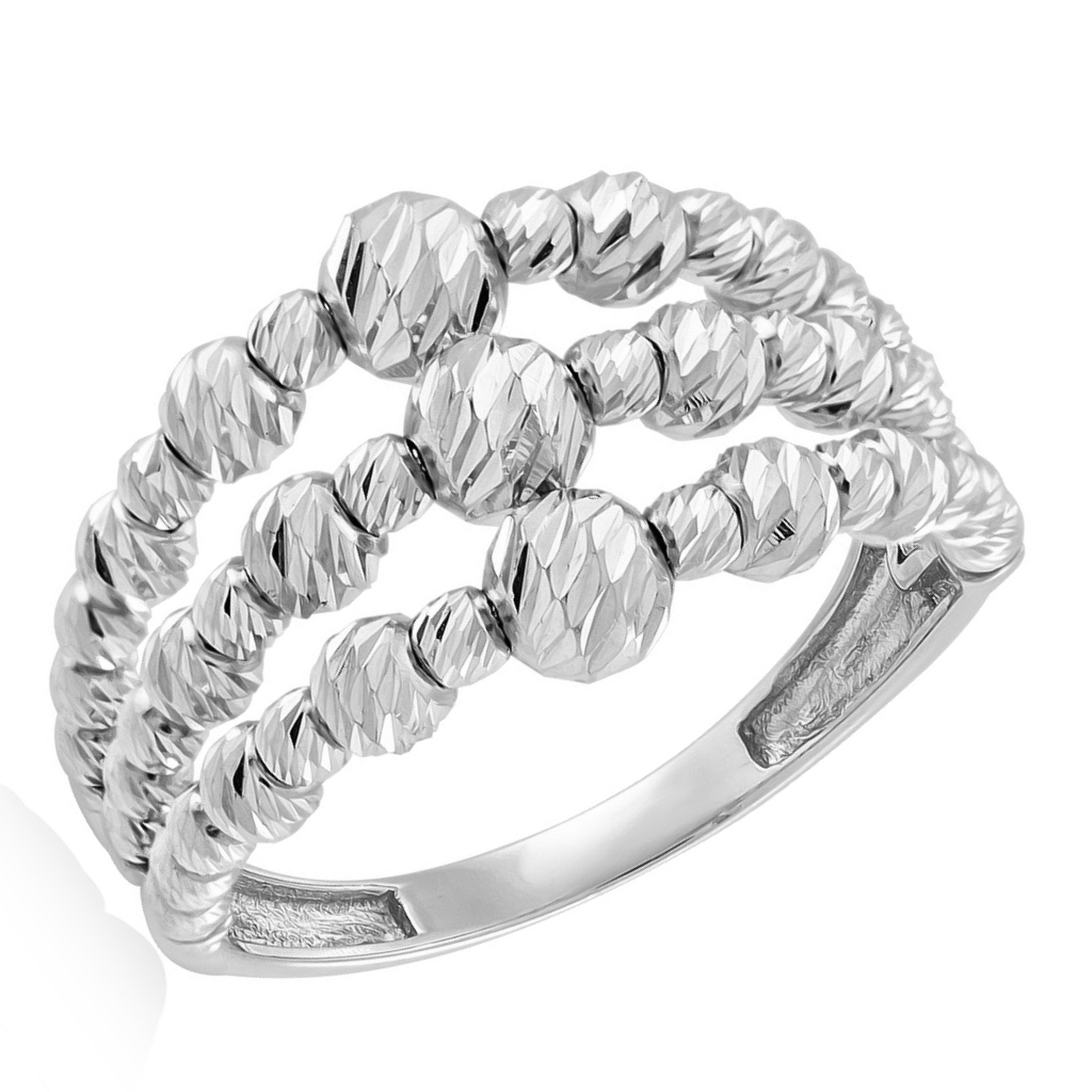 Женское кольцо от Mostar Jewellery выполнено из желтого золота 585 пробы. Верхняя часть шинки образовани тройной дорожкой из шариков разного размера.