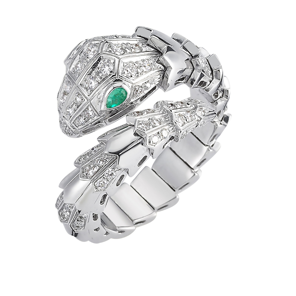 Специальная обработка поверхности кольца имитирует чешуйчатую кожу змеи, глаза украшают цветные фианиты. Такое украшение выделяется своей нетривиальностью и привлекает внимание.