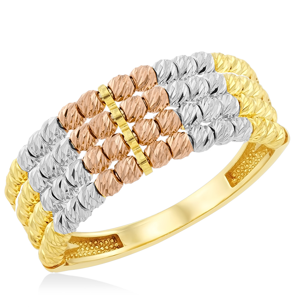 Дизайнерское женское кольцо из комбинированного золота 585 пробы украсит ваш повседневный и праздничный образ.
